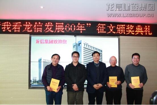 龍信集團董事長陳祖新發(fā)表了熱情洋溢的講話,陳董首先向關(guān)心龍信發(fā)展的各界人士表示感謝,對本次征文比賽獲獎人員表示祝賀。向大家介紹了集團發(fā)展歷程,龍信成立于1958年,是海門最早成立的建筑施工企業(yè),公司一直堅持以建筑為主業(yè),常年奮戰(zhàn)在全國各地,近年來參與家鄉(xiāng)建設(shè),為家鄉(xiāng)人民提供高品質(zhì)全裝修住宅和一流的服務(wù)。目前集團四板塊一中心聯(lián)動發(fā)展,形成“建筑產(chǎn)業(yè)化、綠色建筑、全裝修成品住房、養(yǎng)老產(chǎn)業(yè)”四張王牌優(yōu)勢。面對激烈的市場環(huán)境,建筑企業(yè)需不斷創(chuàng)新,變革發(fā)展,未來通過上市進一步規(guī)范企業(yè)管理,使得企業(yè)健康長久發(fā)展。陳董談到,龍信的發(fā)展還得益于優(yōu)秀文化的支撐,從創(chuàng)業(yè)之初的“老實做人、實在做事”的務(wù)實作風(fēng),到現(xiàn)在持續(xù)創(chuàng)新、追求高效、合作共贏,無不體現(xiàn)著龍信與時俱進的作風(fēng)。未來,龍信將為實現(xiàn)百年企業(yè)努力奮斗。隨后,海門市委宣傳部副部長、海門日報社社長沈健生,總編范軍、副總陳松,龍信集團董事長陳祖新、總經(jīng)理唐愛東、副總經(jīng)理何咸軍等為本次“我看龍信發(fā)展60年”征文比賽中榮獲一、二、三等獎的獲獎人員頒發(fā)獎金和證書并合影留念。獲獎代表上臺發(fā)表講話。他們紛紛表示與龍信有著不解之緣,多年來一直關(guān)注龍信的發(fā)展,通過這次征文活動,對龍信有了更為直觀的了解。獲獎代表共同祝愿龍信發(fā)展騰飛,期待實現(xiàn)百年龍信的宏偉目標(biāo)!最后,所有嘉賓在龍信大廈前合影留念。
