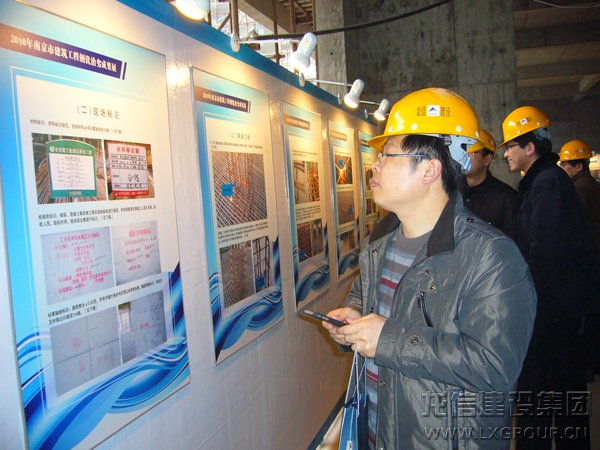 由江蘇省建設(shè)廳、南京市住建委和南京市質(zhì)監(jiān)站組織,2011年2月22日建設(shè)部吳慧娟司長及隨行、省建設(shè)廳徐副廳長、省各市縣建工局、安監(jiān)站、質(zhì)監(jiān)站領(lǐng)導300余人在南京市精品示范工程試點項目----龍信集團仁恒G53公寓項目部進行現(xiàn)場觀摩活動。集團公司董事長陳祖新、南京分公司經(jīng)理江建明、項目部陳揚、朱福生、蔡春燕、葛玉林、徐向華、李雪平、張沖、朱永新等同志陪同、解說。